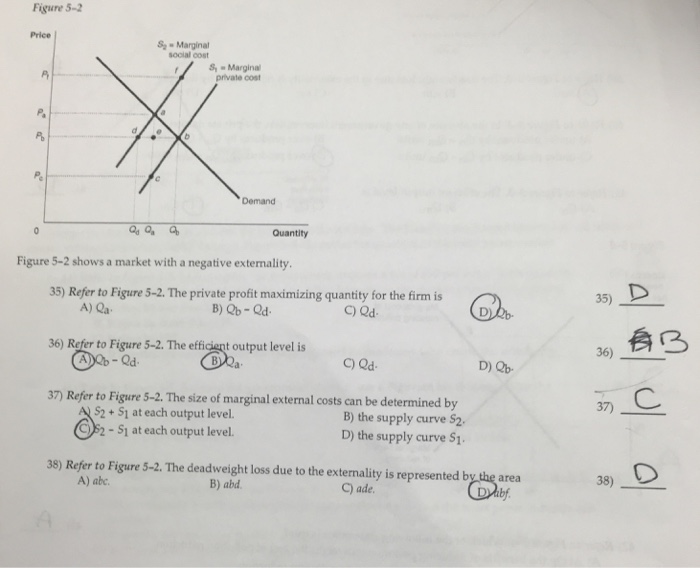 Figure 5-2 shows a market with a negative externality. The private profit maximizing quantity for the firm is. B the supply curve S1.